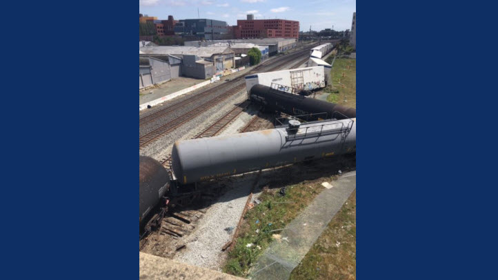 Derailed Train Blocking Intersections on Shellmound Street in Emeryville - NBC Bay Area