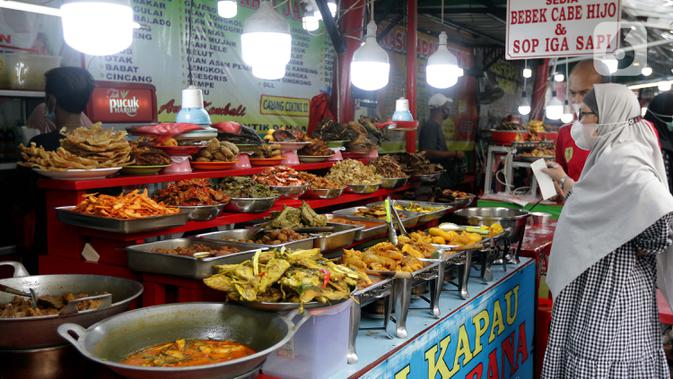 Lemang, makanan favorit khas Sumatera Barat yang dijajakan di kawasan Food Street Kramat, Jakarta, Jumat (30/4/2021). Kawasan yang menjual beragam menu makanan khas Sumatera Barat selalu ramai dikunjungi pecinta kuliner terutama jelang waktu berbuka puasa. (Liputan6.com/Helmi Fithriansyah)