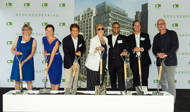 Group Groundbreaking – Shown, left to right, Vicki Been, New York City Deputy Mayor; Rachel Loeb, NYCEDC President and CEO; Mel Ruffini, executive vice president, AECOM Tishman; Gale Brewer, Manhattan Borough President; Sujohn Sarkar, Managing Director, Asset Management, Trinity Church Wall Street; Tommy Craig, Senior Managing Director of Hines; Rick Cook, Founding Partner of COOKFOX Architects