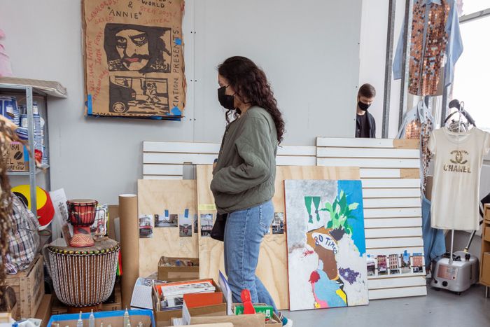 “We first witnessed these drum sessions as soon as we got our space because directly across the street there’s this little area protected by a scaffold on a building where vendors gathered and had very celebratory day-long events — there was drumming, there was barbecuing, there were lamb roasts. Everyone was welcome to come eat and feast and dance and sing. They still occasionally do this, but in June, when the city opened up, literally all of the Canal Street of the past year really disappeared because the NYPD started doing 24-hour surveillance with floodlights, you know, to protect all the empty storefronts on this stretch of Canal. We went up to the cops stationed there recently, and we said, ‘We’re curious — why are you here 24/7? It’s quite a lot of resources?’ And they said to us, ‘Girls, I don’t know if you know what’s going on here, but these men here on the street are doing all kinds of things. They’re not just selling bags. They’re barbecuing.’ The threat of the barbecue!”