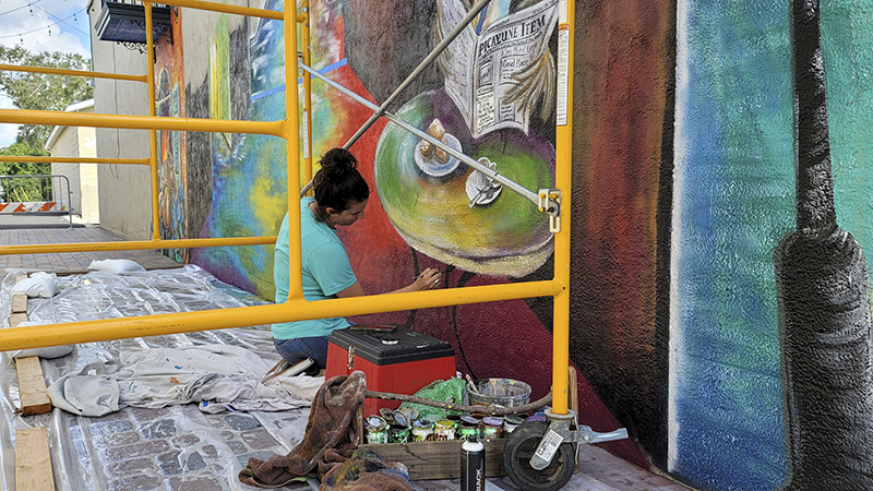 As part of the project, the alleyway received a complete makeover, including brick pavement, light strings donated by Home Depot, and a mural by Picayune artist Ashley Mason that features a French Quarter theme. Dinning tables, benches, plants and flowers will be added to the ally.